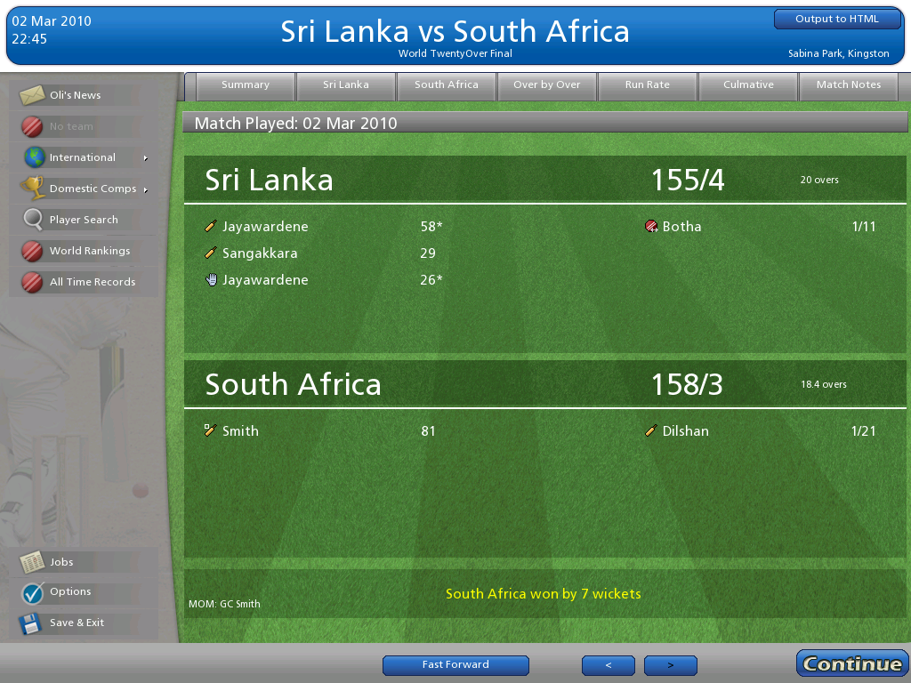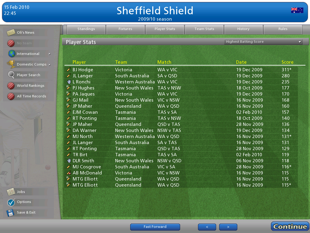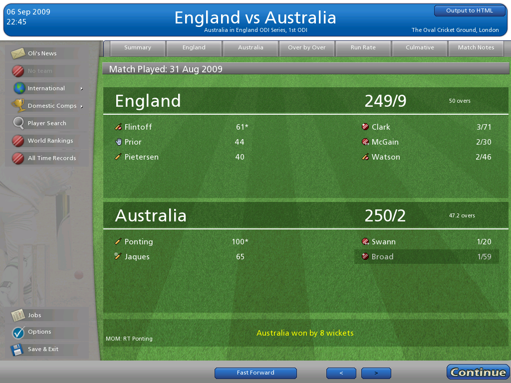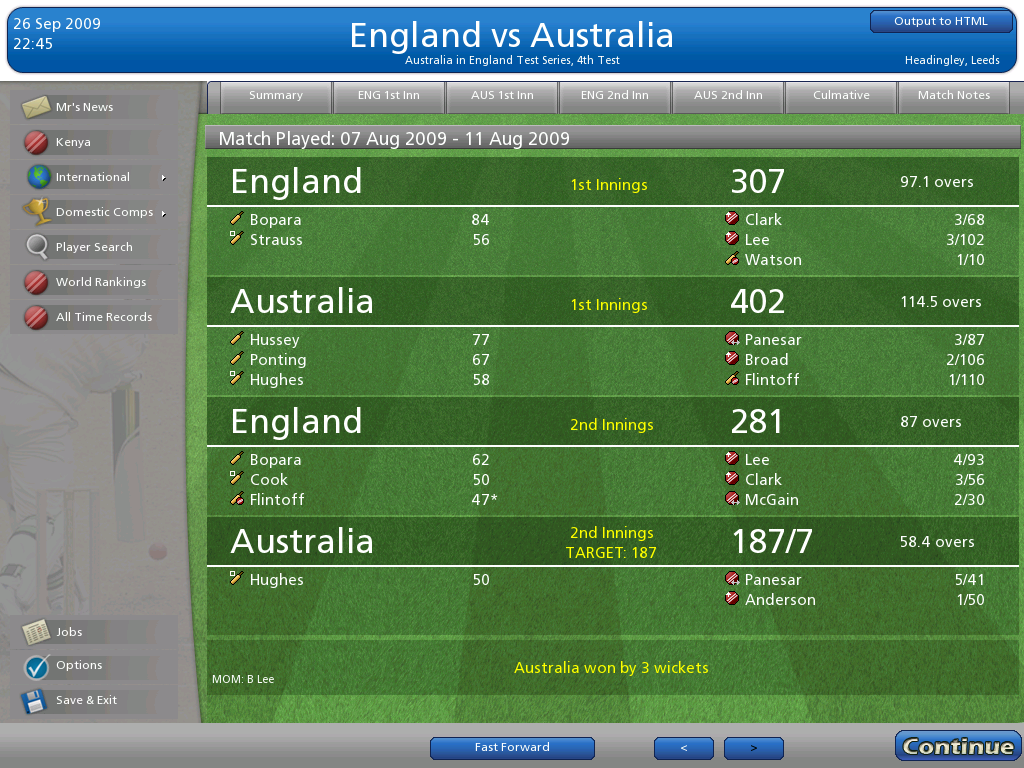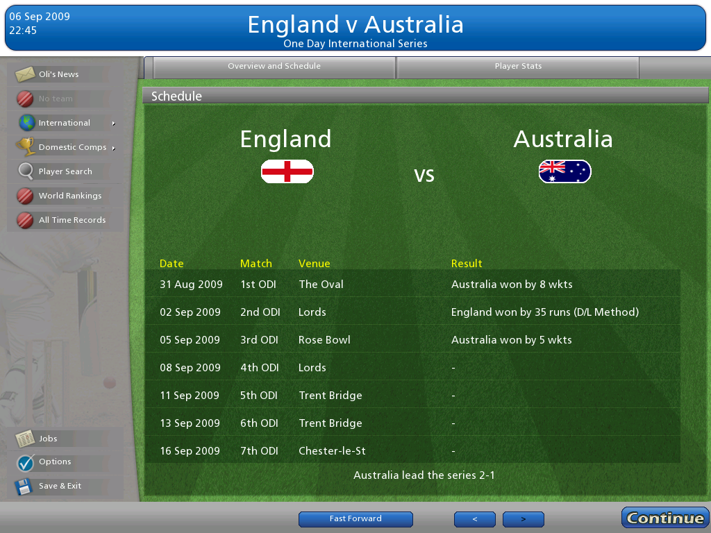 2 years on from CC2007, Cricket Coach returned during the Ashes series of 2009. A new graphical engine meant that the game ran much smoother, meanwhile for the first time minor cricketing nations were added to the game, meaning sides such as Afghanistan were playable.