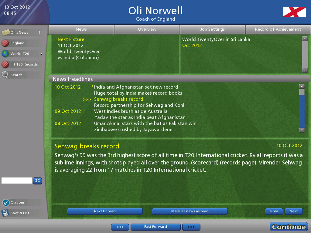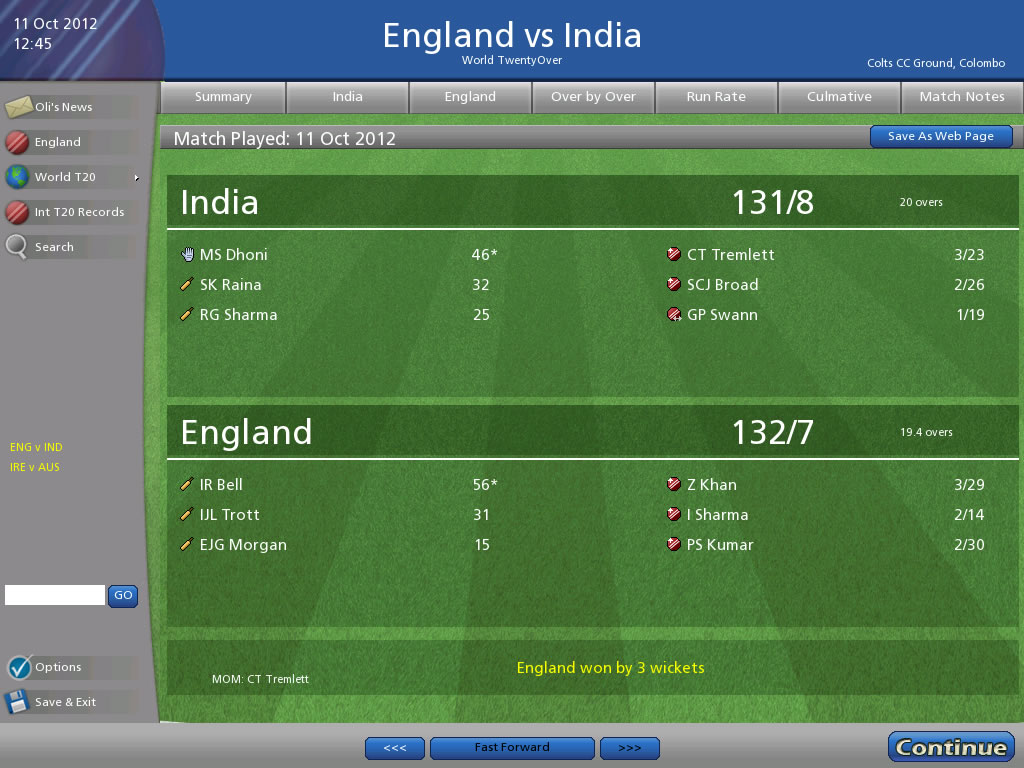 Features a 20 over World Cup mode playable as any one of 46 international teams, plus a spectator mode if you wish to simply simulate the tournament. Also includes the output to HTML Almanac feature from Cricket Coach 2012, so you can export to HTML all your match scorecards and results.Includes the same exciting gameplay as found in Cricket Coach 2012, can you lead your country to glory?! Or instead will you opt to try and cause a shock, and get Ireland or Afghanistan to the super eights or beyond?
